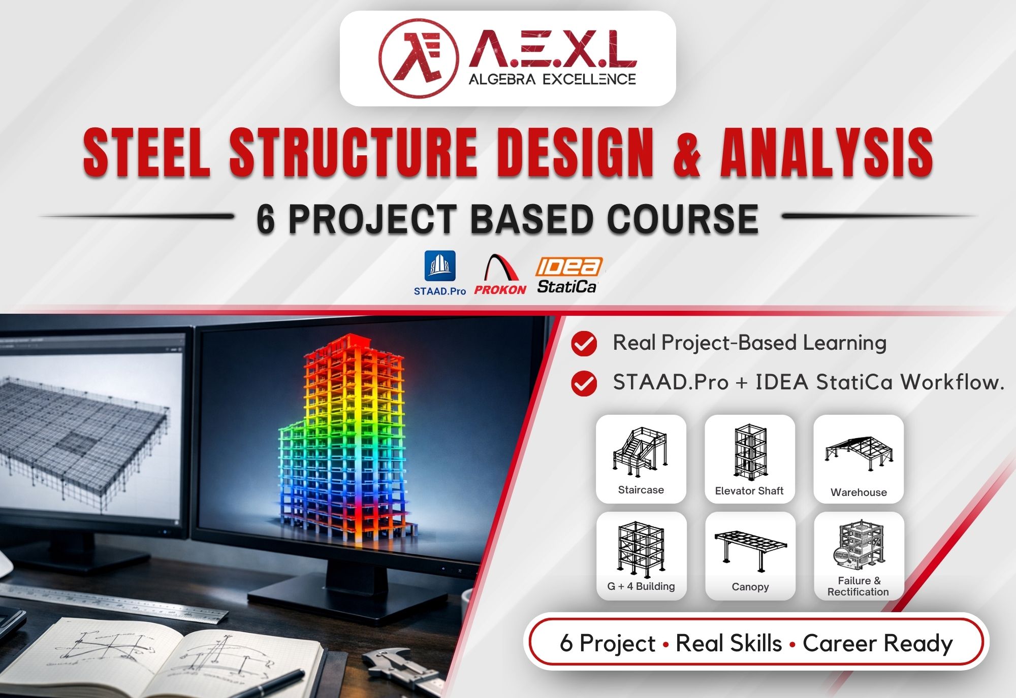 Hands-on steel structure training with 6 real projects, STAAD.Pro modeling, connection design, and industry-ready deliverables for engineers.